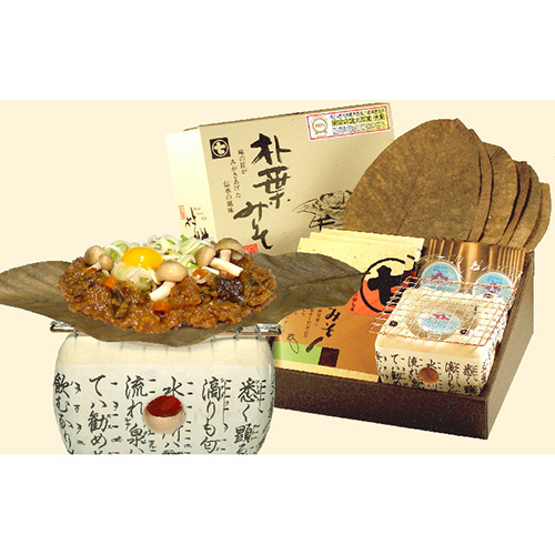 内容量:菜みそ150g×3パック、民芸コンロ、コンロ台、金網、朴葉6枚、固形燃料6個