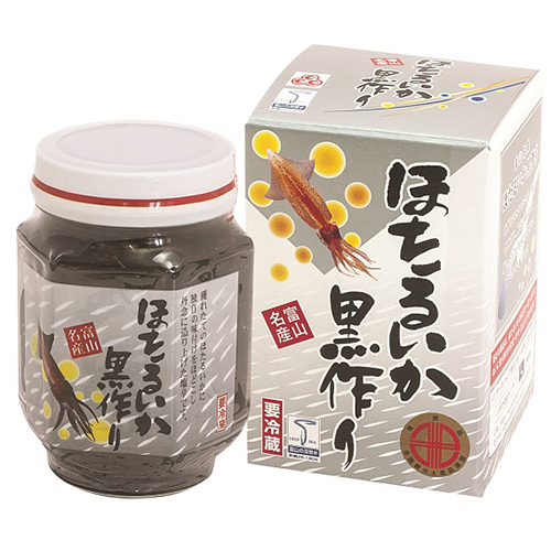 新鮮なほたるいかにいかのスミを和え、独自の味付けを施し、コクと旨味を引き出した逸品です。お酒のお供やパスタの具材としても好評です。