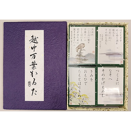 越中で詠まれた大伴家持の歌を中心に万葉集の越中関連歌を小倉百人一首のようにかるた形式にしたものです。(監修:中西進 企画:高岡市教育委員会、高岡古城ライオンズクラブ)