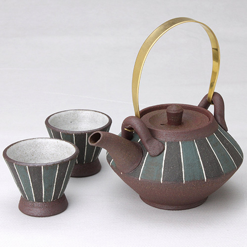 日本酒用の酒器です。福島県郡山市産の陶土を使って製作しています。古今東西、普遍的な縞模様を用い、「粋」な和モダンな商品に仕上げました。