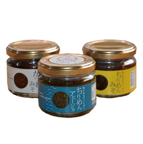 地区:宮崎県 税込み価格:2,300円 内容量:ちりめんアヒージョ90g、ちりめんみそ130g、かつおみそ130g 業者名:㈱高橋水産 事業者住所:延岡市土々呂町3丁目4029番地2