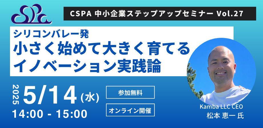 本セミナーでは、シリコンバレーを拠点に実際のプロジェクト支援を行ってきたKamba LLC CEOの松本恵一 氏が、現地の事例とともに「現場から始まるイノベーション」のリアルをお伝えします。特に、小規模チームでも機動力を活かしながら、組織の枠を超えて成果を出すための”仕組み”と“支援のしかた”にフォーカスします。